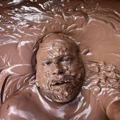 Mr Slime Guy got lowered into a big vat of warm chocolate pudding by cdee